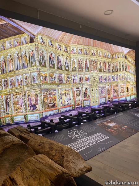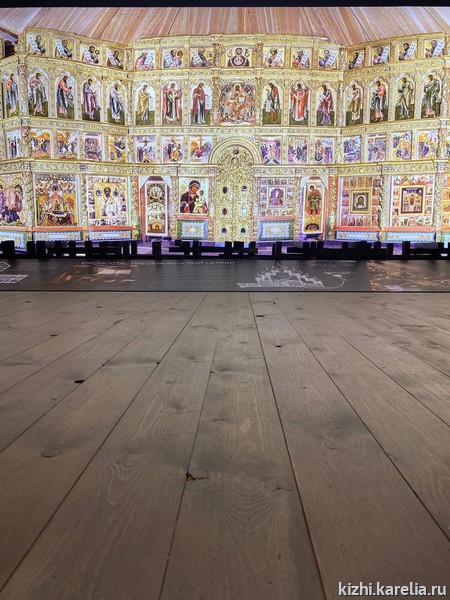 Освещает и украшает зал масштабное изображение одного из самых больших резных иконостасов на Русском Севере. На информационных стойках представлен материал о процессе его реставрации. Здесь же можно увидеть тябло первой четверти XVIII века — крепежное устройство для рядов икон.