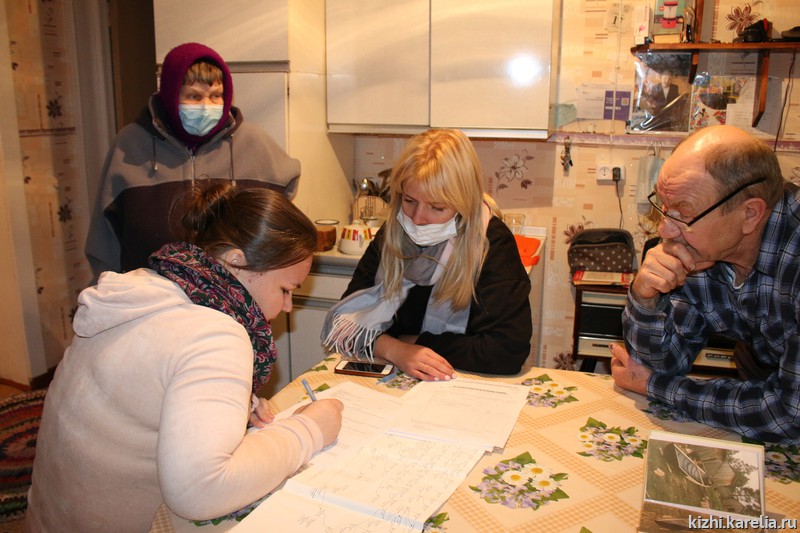 Затем музейный десант отправился в поселок Панозеро, где состоялась настоящая полевая экспедиция — общение с местными жителями и передача подлинных предметов в фонды музея «Кижи». На встрече вспоминали родителей и односельчан, рассказывали семейные истории, дополняли сведения о семьях, реликвии которых находятся в фондах музея «Кижи» с 1970-х годов. Панозерские жители с гордостью показали свои родословные, некоторые — до восьми поколений.