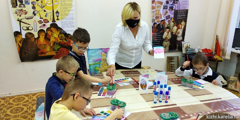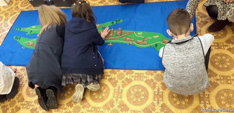 Темой встречи музейных педагогов с особыми детьми стало знакомство с историей одного из главных праздников на острове Кижи — Покрова Богородицы. По этому случаю с помощью тактильной карты ребята отправились с виртуальное путешествие на остров Кижи, где посетили Покровскую церковь и другие исторические памятники.