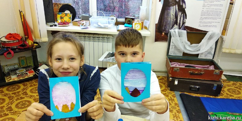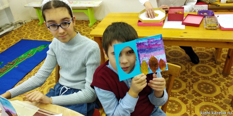 В завершение путешествия ребята приняли участие в мастер-классе «Осенние купола». Здесь их и ждало чудо — педагоги заранее нанесли силуэты куполов восковым контурным карандашом на листы бумаги. Дети с замиранием сердца рисовали акварелью небо над Кижами, а на рисунках, как на фотобумаге, проявлялись главки кижских храмов.