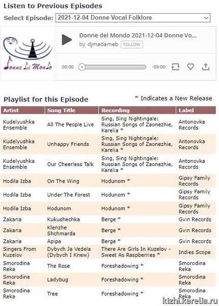 Песни из репертуара ансамбля прозвучали в эфире радиопередачи на английском языке Donne del Mondo Russian World Music Chart.