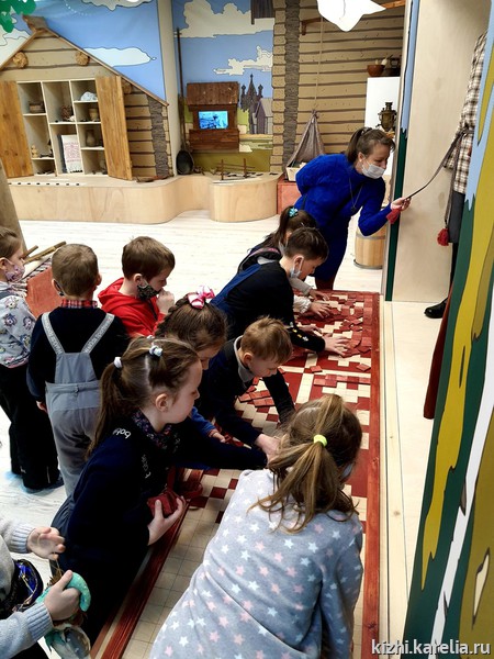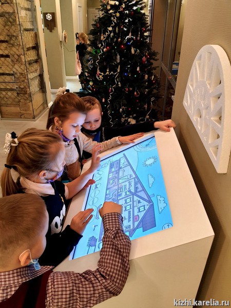 Дети зачаровано смотрели представление святочного театра «Рождественский вертеп», побывали на интерактивных выставках «Земля KižiMua» и «Кижи. Медиапространство», поучаствовали в забаве «Проживи год на острове Кижи в XIX веке» и на сенсорной панели угадали названия предметов крестьянского быта, а также своими руками создали «Рождественского ангела» — новогоднюю игрушку, исполненную в технике росписи по дереву.