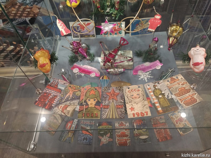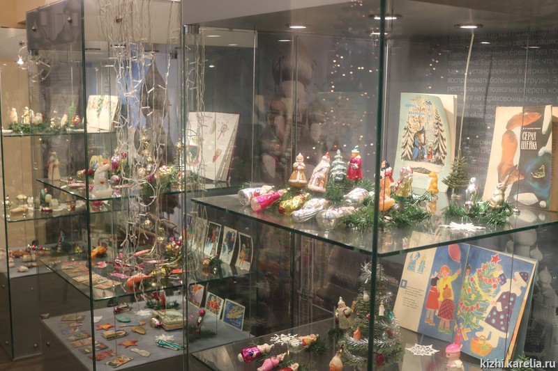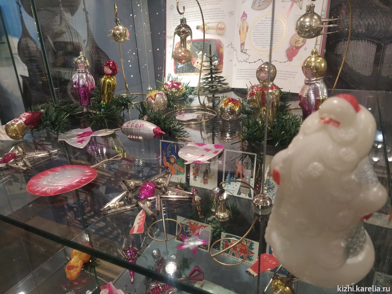 Витрины с ностальгическими украшениями из папье-маше, ваты, стекляруса и картона появились в визит-центре музея «Кижи» на пл. Кирова, 10 а