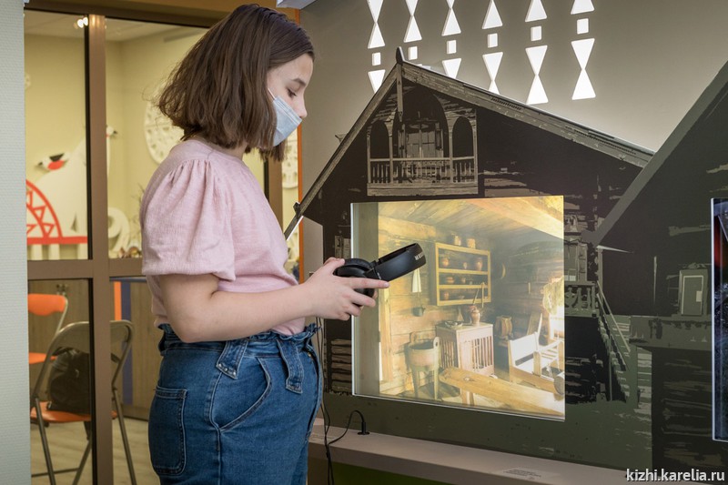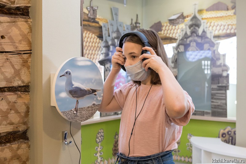 Также можно услышать старинные сказки, былины и песни, посмотреть мультфильм «Кижские истории». Научиться отличать птиц по голосам, заглянуть в окна заонежского дома и в отреставрированную Преображенскую церковь.