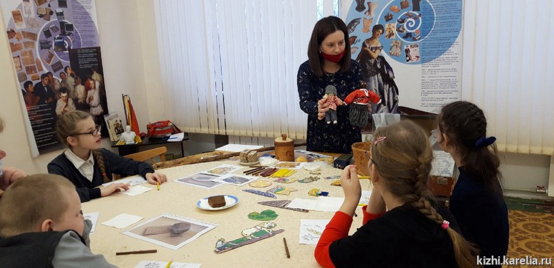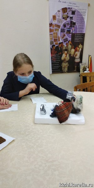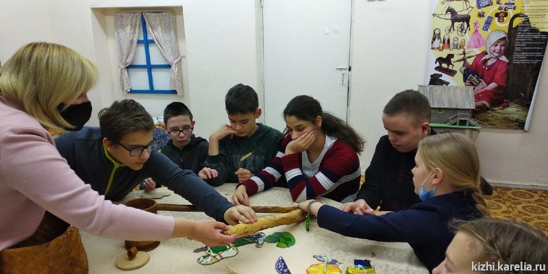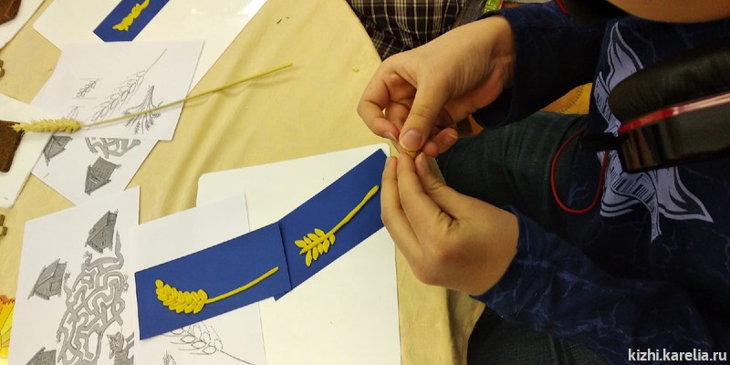 А затем с помощью музейных предметов показали ребятам историю рождения хлеба. Для детей с ослабленным зрением и другими проблемами здоровья важны тактильные ощущения, поэтому они взаимодействовали с цепом и севалкой, трогали настоящие колоски ржи и пшеницы с кижских полей. И с удовольствием участвовали в инсценировке сказки «Вершки и корешки». В завершении каждый ребенок слепил из пластилина колосок на память.