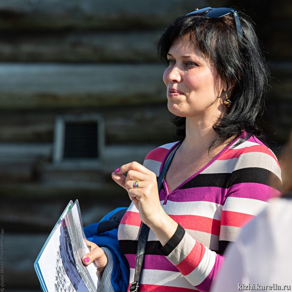 - «Нас встретила гид Мария (фамилию на бейдже, к сожалению, не запомнили). С какой любовью она рассказывала о месте, где мы находимся, а когда мы задавали вопросы, она с радостью углублялась в тему и делилась знаниями. Порадовало, что она ссылалась в своих рассказах на какие-то личные примеры, как ее родня карелы из Заонежья говорили так и так, это было очень наглядно. Для себя от экскурсовода я узнала, что мой дедушка не просто так ради шутки говорит „истопил байну“, а так говорили заонежане».