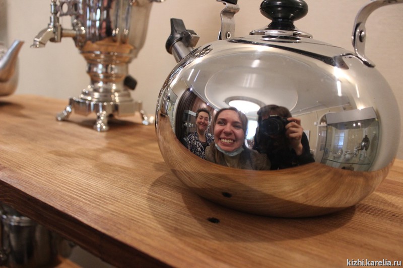 Где печь — там и самовар! Организаторы новой экспозиции постарались создать уютное пространство, где можно спокойно пообщаться за чашкой чаю. Тему домашнего тепла продолжает смежная выставка «В самоваре вóда греетсе».