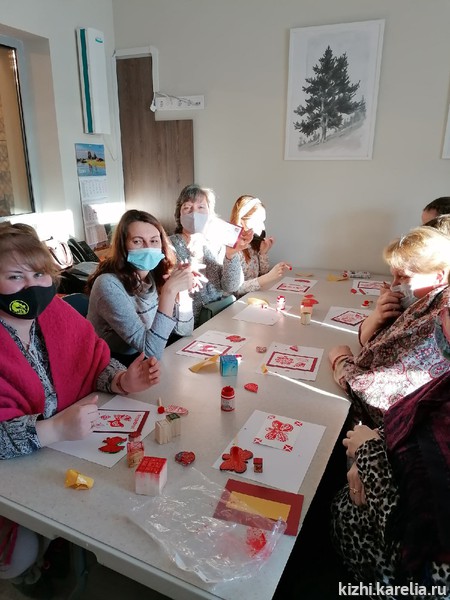 Образовательную деятельность в музее «Кижи» ведёт не только Детский музейный центр, но и другие подразделения музея. Большой интерес у участников семинара вызвало выступление Натальи Михайловой, руководителя Фольклорно-этнографического ансамбля, которая познакомила педагогов с ресурсами по теме «Духовное наследие Карелии». Татьяна Павлова, начальник отдела сохранения природного наследия, рассказала об образовательных экологических программах, которые реализует музей. В завершении программы семинара педагоги познакомились с техникой набойки и изготовили открытку с использованием данной техники.