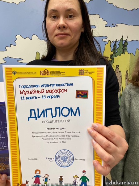 Среди награждённых семейная команда Кондратьевых из Петрозаводска. Мама Александра, папа Денис и двое сыновей — Роман и Алексей — посетили 6 музеев и выполнили все творческие задания. «Больше всего понравился Музей промышленной истории края и еще „Детский музейный центр“,— поделилась семья.