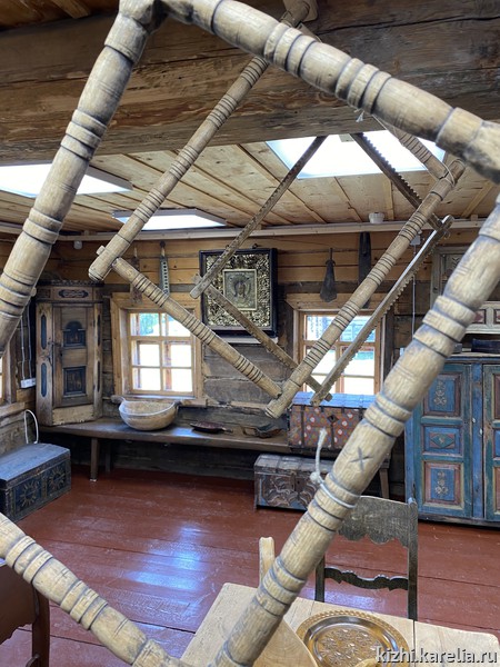 Руководители Управления посетили несколько новых экспозиций, которые вскоре откроются в домах-памятниках самого удаленного сектора музея — Пудожского. Одна из них представляет дореволюционную сельскую школу и быт учителя, вторая — уникальную коллекцию предметов из дерева — от саней и архитектурных украшений до посуды и пасхальных яиц. Основой для третьей выставки станут подлинные элементы «неба» Преображенской церкви: древние расписные тябла и замковой кольцо, некогда обрамлявшие пятиметровые клиновидные иконы и центральный медальон на потолке самого известного деревянного храма России.