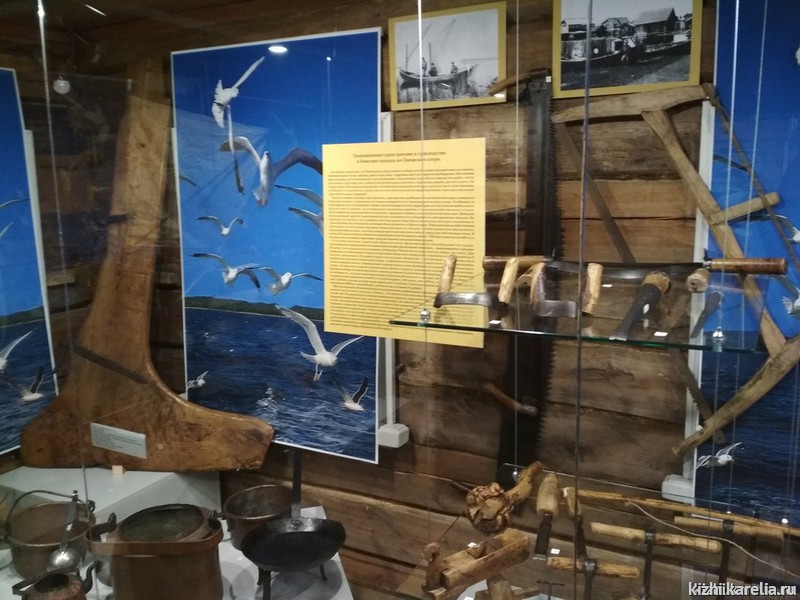 В экспозиции представлены малоизвестные предметы и копии фотографий из фондов музея музея-заповедника «Кижи» и Национального архива Карелии; фильмы о мастерах, лодочном строительстве и о музейном празднике «Кижская регата».