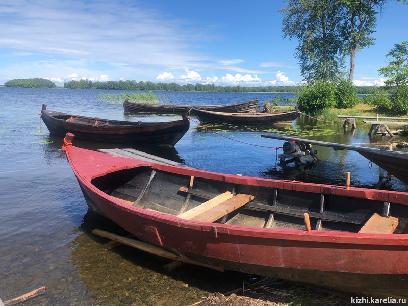 Кижская гавань — один из самых живописных уголков острова. Здесь, на самой южной его оконечности, разлита в воздухе особая атмосфера покоя. Тихо покачиваются на воде среди уток и жёлтых кувшинок лодки-кижанки, долбленки-ушкуи, соймы. Об их истории, истории судоходства и традиционном судостроении в Кижских шхерах рассказывает выставка «Водные пути-дороги», которую можно посетить в избе крестьянина Сергеева на берегу Кижской гавани.