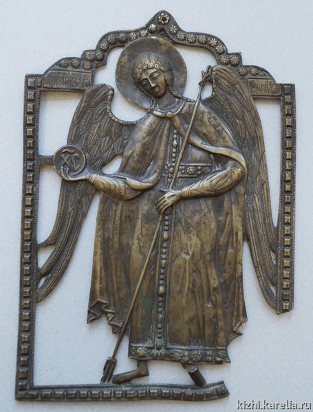 В 2004 году в коллекцию музея-заповедника «Кижи» поступила медная икона с прорезным рельефным изображением Архангела Гавриила с крыльями за спиной. В правой руке Архангела — зерцало; левой рукой он поддерживает направленный вниз трезубец.