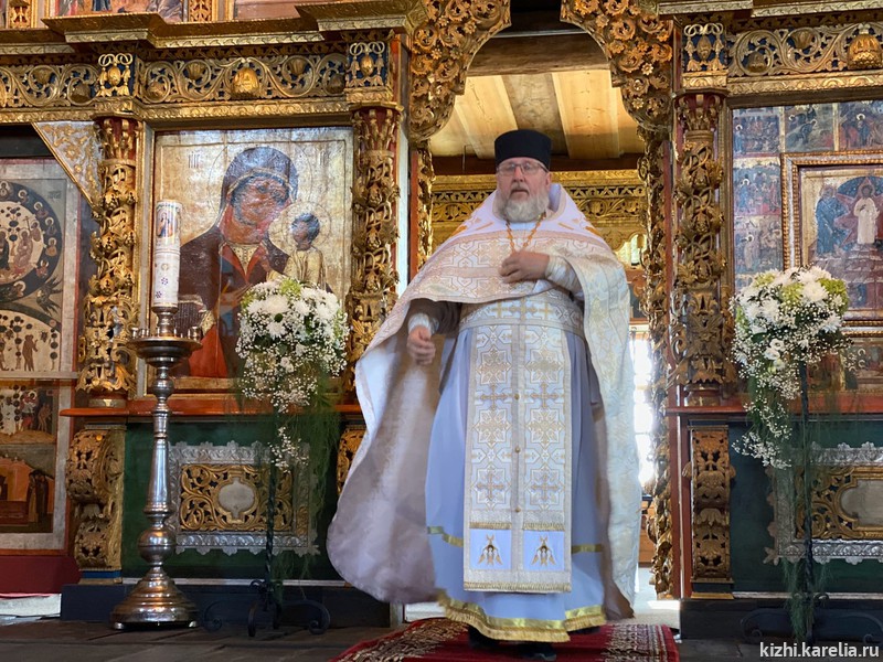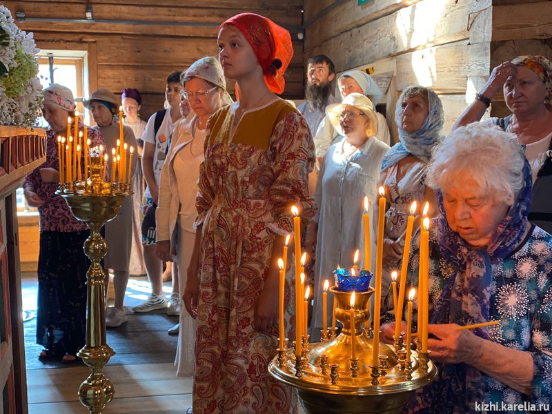 На остров Кижи съехались потомки древних заонежских родов. Сегодня они, по старой традиции, почетные гости музея «Кижи» в самый главный день лета — престольный праздник Преображенской церкви Кижского погоста, он же — День Кижской волости. Центральное событие дня — торжественное богослужение в одном из самых известных храмов России — двадцатидвуглавой Преображенской церкви: самом большом и сложном деревянном традиционном сооружении в мире, вошедшем в тройку первых объектов Всемирного наследия в нашей стране вместе с Московским Кремлем и историческим центром Санкт-Петербурга. Это второе по счету богослужение после освящения церкви в прошлом году по завершении масштабной реставрации.