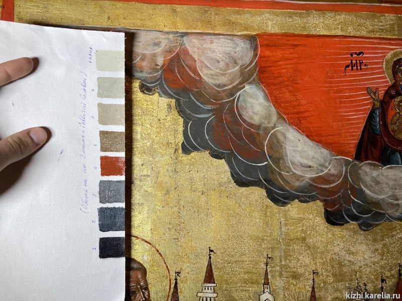 В настоящее время специалисты Санкт-Петербургской академии художеств имени Ильи Репина работают над колерной картой иконостасных икон церкви Преображения Господня, а также составляют выкраски потолочных икон храмов Заонежья, схожих по времени и написанию с комплексом икон Преображенской церкви.