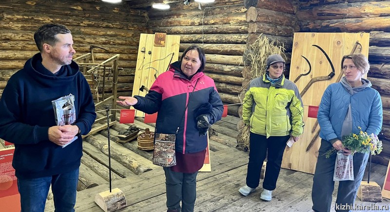 Первыми посетителями стали участники практикума, который проходит в эти дни во Всероссийском центре деревянного зодчества для волонтеров, занимающихся восстановлением деревни Гафостров.