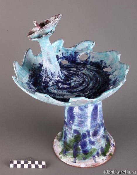 Ваза из собрания работ художника и гончара Романа Леонтьева. Поступила в музей «Кижи» в 2012 для формирующейся коллекции современного декоративно-прикладного искусства.