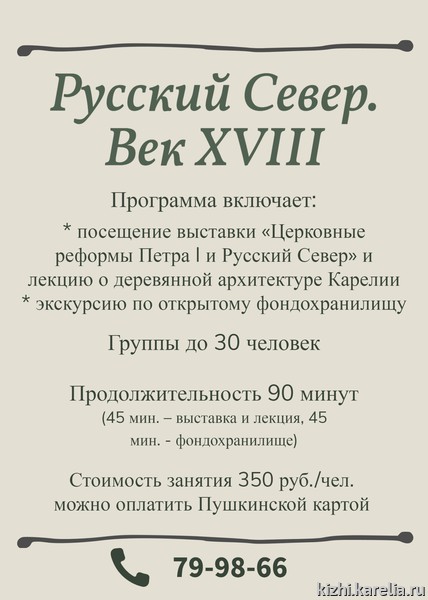 Музей «Кижи» приглашает на программу «Русский Север. Век XVIII»