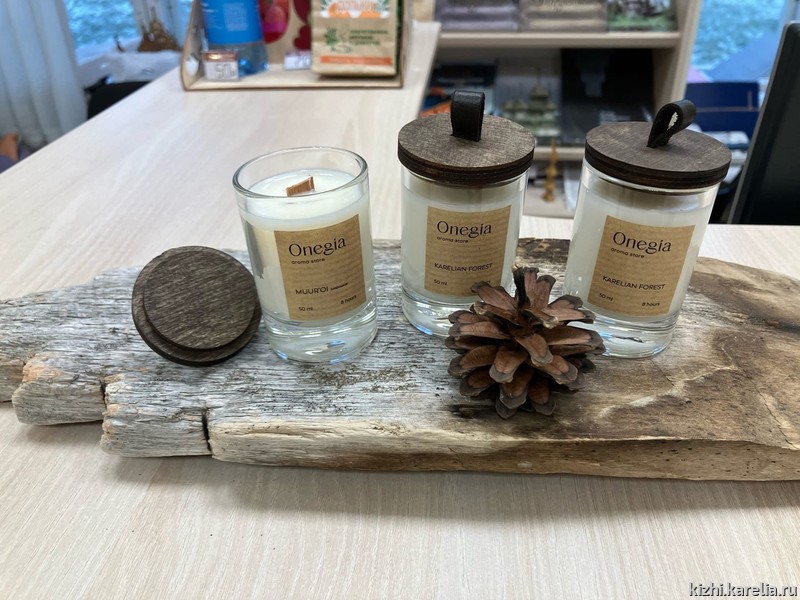 Арома-свечи «Karelian» созданы вручную и на 100% состоят из соевого воска. Вместо фитиля использована деревянная щепка — во время горения свечи будет слышен треск, как от маленького костерка.