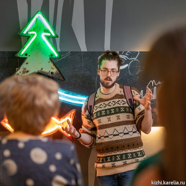 Первыми посетителями выставки стали наши партнеры: салон LED, проект «СВѢТ». Роман Молодцев и Роман Пяскин предоставили артефакты советского периода, например, неоновую вывеску старейшего карельского рыбокомбината. И рассказали посетителям о тонкостях современной светотехники.