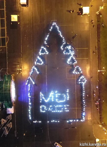 Совсем недавно, накануне Дня народного единства с помощью волонтеров на площади Кирова в Петрозаводске была построена живая Преображенская церковь — силуэт храма в натуральную величину из более чем 500 человек. Акцию провели совместно музей «Кижи» и Городской дом культуры Петрозаводска.