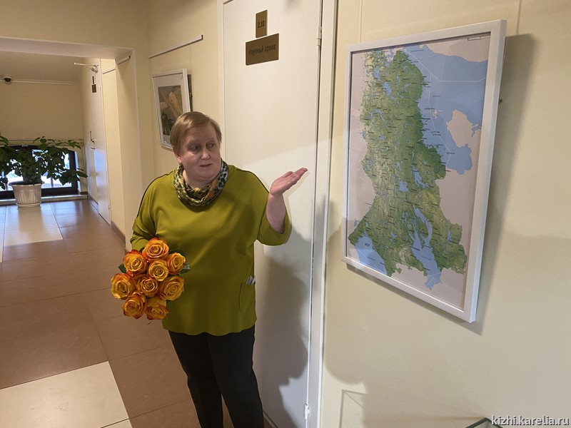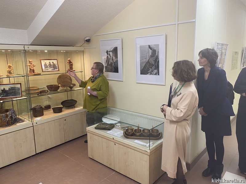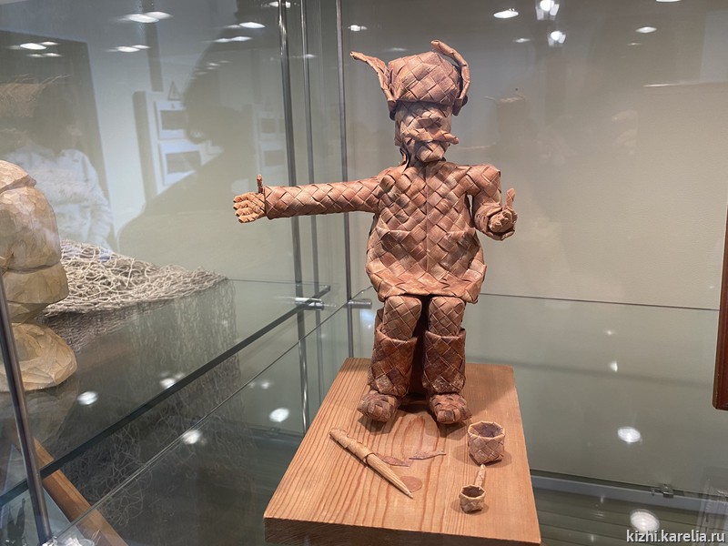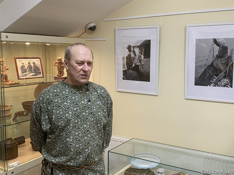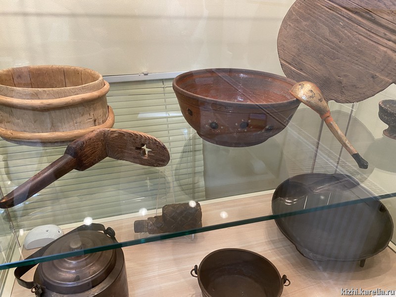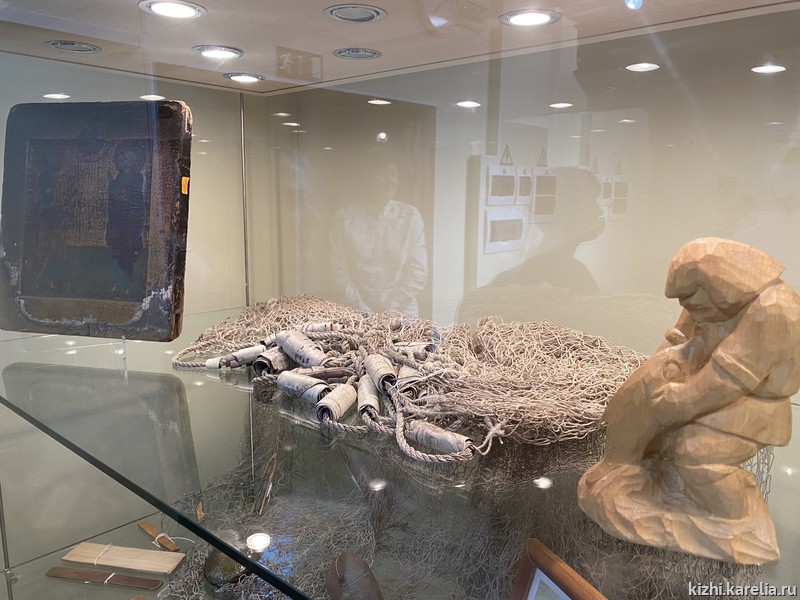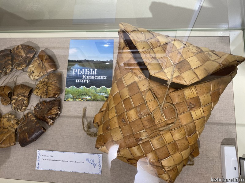 На выставке также представлены архивные фотографии, старинная посуда, украшенная оттисками рыбьих позвонков и огромная щучья челюсть. Эта щука, весом почти 14 килограмм, была выловлена в районе острова Кижи местными рыбаками. Щучья челюсть считалась оберегом, ее часто вешали над дверями в жилых домах, как защиту от напастей.