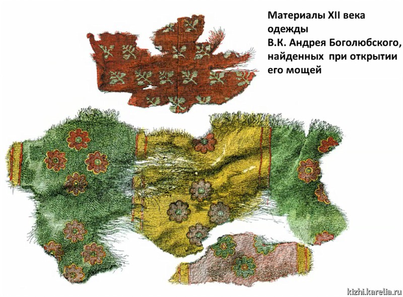 Начнем с древности, с ничтожно малых обрывков материи, найденных в древних русских погребальных курганах — черниговских, киевских, полтавских, владимирских. Родина этих тканей — Византия.