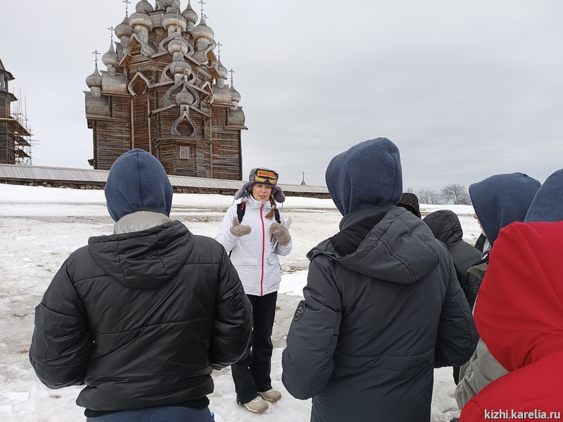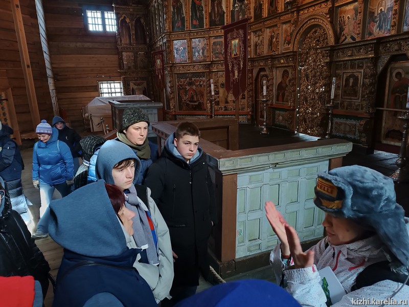 «Я вам открою главные тайны острова Кижи»,— пообещала ребятам лучший экскурсовод России Марина Ноженко. Вместе с Мариной ребята посмотрели шедевры деревянного зодчества, зашли в закрытую на зимний период знаменитую Преображенскую церковь, чтобы увидеть один из самых величественных иконостасов на Русском Севере.
