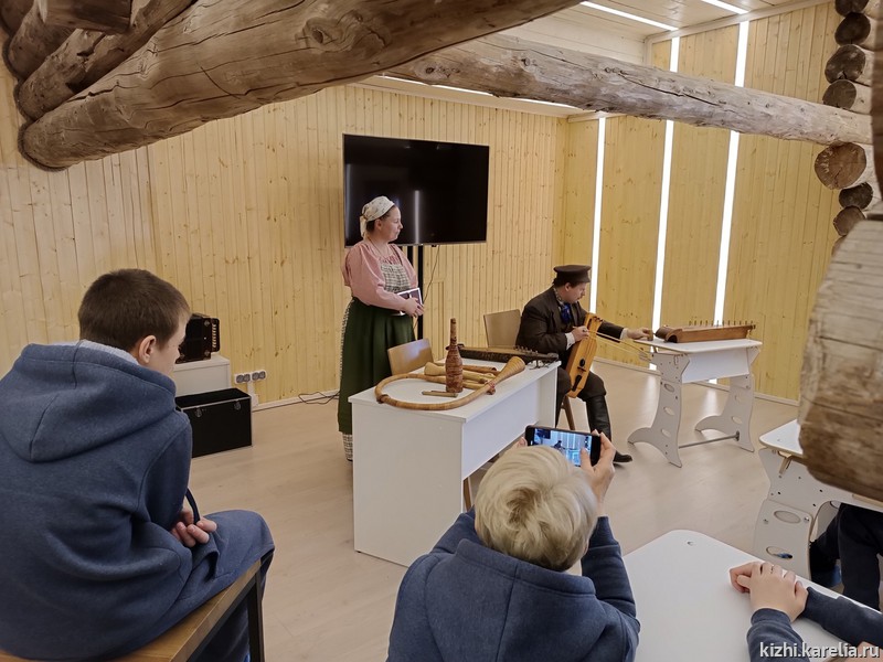 В старинной кузнице вместе с мастером-богатырем Сергеем Танана каждый смог выковать на память кижский гвоздь. Ребята не ожидали, что в каникулы сядут за парты — необычный урок музыки провели руководитель Фольклорного ансамбля музея «Кижи» Наталья Михайлова и гармонист Евгений Михайлов. Они показали, как звучат старинные народные музыкальные инструменты, и рассказали, из чего они сделаны.