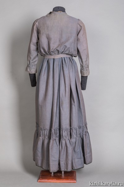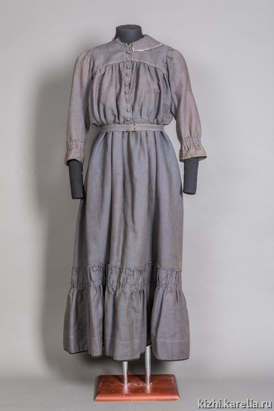 Продолжаем знакомство с коллекциями музея «Кижи». Сегодня в нашей рубрике — женский наряд, состоящий из сарафана с кофтой, из села Нюхча Беломорского района. Комплекс выполнен из мелкоузорной полушерстяной ткани, привезенной из Архангельска. Сшила его Ольга Дмитриевна Карельская в 1920–1925 годах.