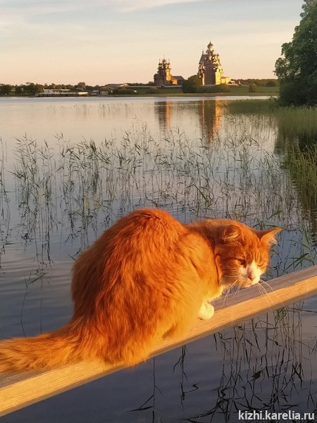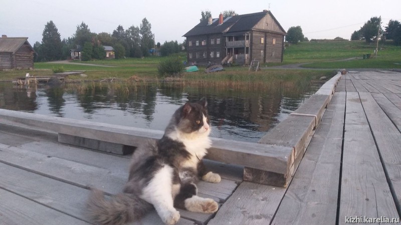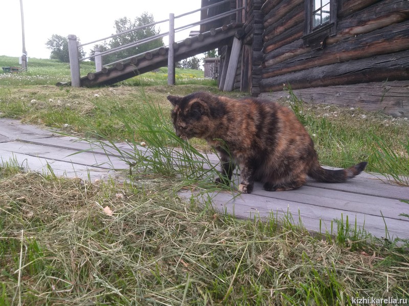 В музее «Кижи» очень любят котов. Они живут на острове Кижи в крестьянских домах. Коты приходят на экспозицию, участвуют в музейных событиях и мероприятиях — даже когда их туда никто не приглашает. Коты следят за нами из своих укромных пряток и радуются, когда мы угощаем их лакомством.