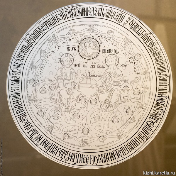 В зале музея «Кижи» на площади Кирова, 10 а открылась новая выставка «Небесное послание», посвященная утраченным «небесам» Преображенской церкви острова Кижи