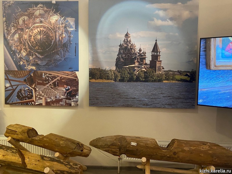 На выставке, подготовленной специалистами музея «Кижи», были представлены более 100 предметов: от клиновидных икон «неба» и подлинных фрагментов сруба Преображенской церкви до масштабной панорамы иконостаса «на семи стенах», старинных плотницких инструментов и деталей реставрационных конструкций.