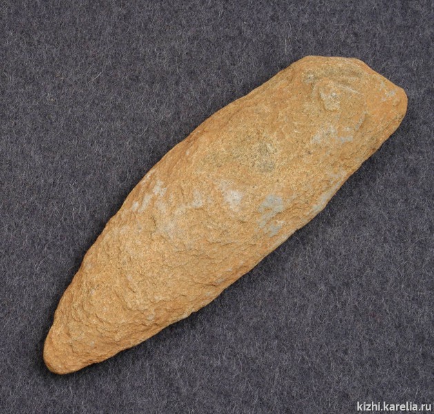 Подобные предметы, часть вооружения древнего охотника, в ходе раскопок встречаются очень редко. На территории Карелии их найдено всего несколько экземпляров. Наконечник из кижской коллекции найден в ходе раскопок древнего поселения Вертилово в южной части Заонежского полуострова. Это поселение относится к эпохе неолита и датируется концом V — первой четвертью IV тыс.
