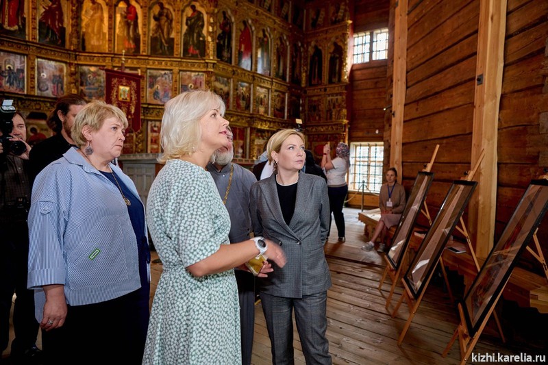 Министр культуры России Ольга Любимова открыла выставку «Город золотой» в Преображенской церкви на острове Кижи