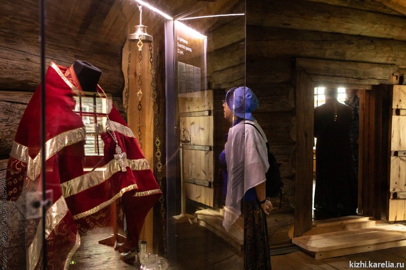 Рядом выставлены огромные подлинные тябла «небес» — расписные балки, на которых держались пятиметровые клиновидные иконы, и фриз древнего иконостаса. Экспозицию дополняют подлинные иконы неба из других храмов Карелии, принадлежности иконописца, элементы иконостаса, церковная утварь и предметы интерьера, пожертвованные прихожанами. Каждая вещь показывает, как из историй отдельных людей складывается история края и история храма, который сегодня является наследием всего человечества.
