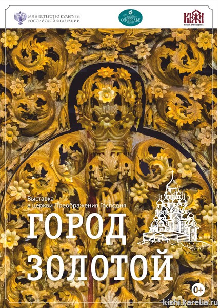 Эта выставка — первая в стенах Преображенской церкви Кижского погоста после реставрации. «Город золотой» — это одновременно Небесный Иерусалим и символизирующий его интерьер церкви, главным элементом которого является грандиозный резной золоченый иконостас высотой более 7 м и шириной свыше 24 метров, расположенный «на семи стенах». Прямо напротив царских врат помещен главный экспонат: подлинное замковое кольцо «небес» — особого комплекса потолочных икон храма, утраченных во время финской оккупации,— и черно-белая реконструкция центрального медальона «небес» диаметром более 2,5 метров с изображением Троицы. У себя над головой посетитель видит пустой шатровый потолок, который когда-то покрывали «небеса». Заполнить его можно при помощи технологии дополненной реальности, увидев на экране планшета цветную реконструкцию «небес».