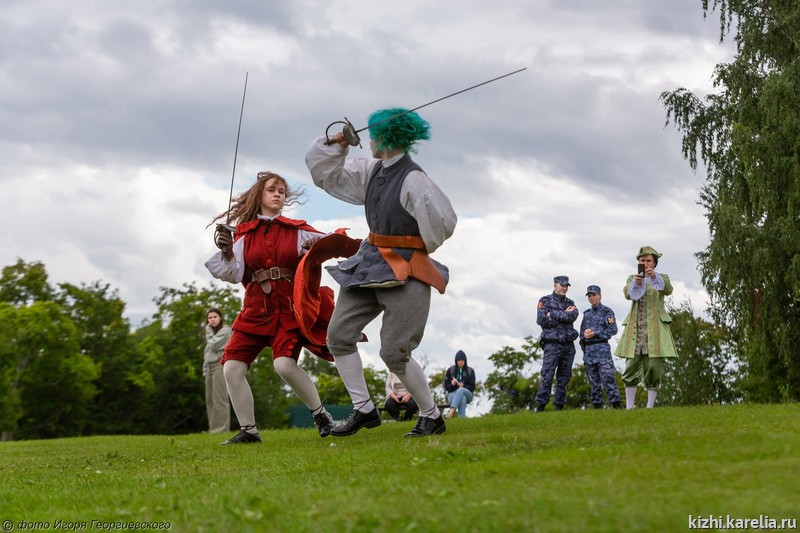 Кондопожский историко-морской клуб «Гардемарин» продемонстрировал номера по фехтованию, приемы с пиками и мушкетами, исторические танцы, потешные игры, организовал рекрутскую школу по армейским артикулам Петра Великого.