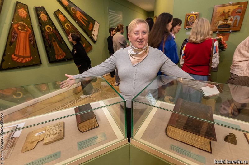 «Эта выставка – итог большой научной работы наших сотрудников, в первую очередь ее автора – ведущего научного сотрудника музея Ирины Набоковой, которая много лет с любовью и тщательностью собирает по крупицам наследие заонежских иконописцев Абрамовых. Сегодня музей обладает самой большой коллекцией этого наследия – более 230 предметов находятся в наших фондах», – поприветствовала собравшихся директор музея Елена Богданова и попросила команду создателей выставки показаться перед публикой.
