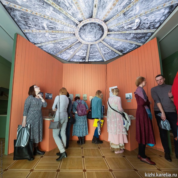 Главную интригу новой экспозиции представила сама автор Ирина Набокова. Оказывается, в невидимой с первого взгляда части выставки спряталась потаенная комната как прообраз иконописной мастерской Абрамовых, славившейся по всему Заонежью во второй половине XIX – первой половине ХХ века.