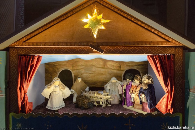 - кукольное представление «Рождественский вертеп» в исполнении артистов Фольклорного ансамбля музея «Кижи». Зрители узнают чудесную историю о рождении Иисуса Христа и злодеяниях царя Ирода, услышат рождественские песни и традиционные наигрыши.