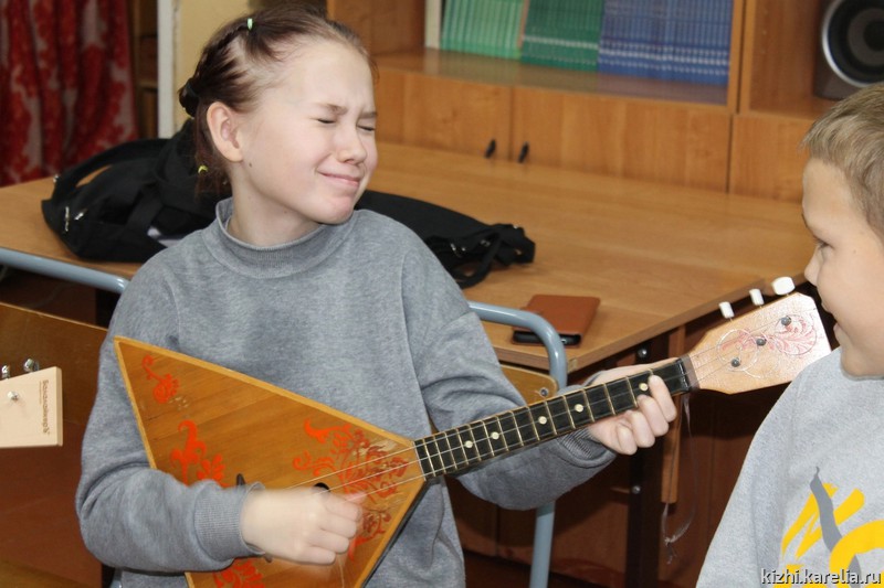 Старшеклассники побывали на мастер-классе актрисы Национального театра Александры Анискиной по сценическому мастерству и актерской речи. Ребята познакомились с народным костюмом вместе с Маргаритой Кемппайнен, а также попробовали сыграть на балалайке. За один урок под руководством Дарьи Москиной получился небольшой сельский оркестр.