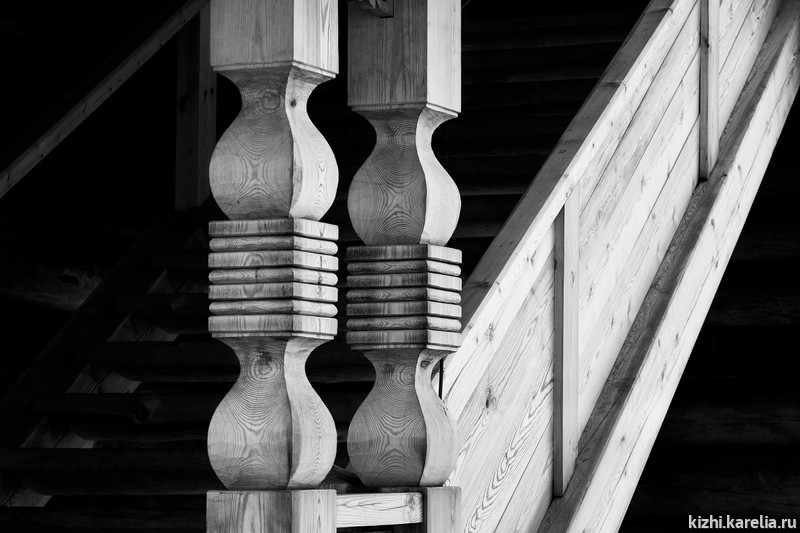 В деревянном зодчестве важны силуэт, игра света и тени. Черно-белая фотография как нельзя лучше подчеркивает эту особенность.