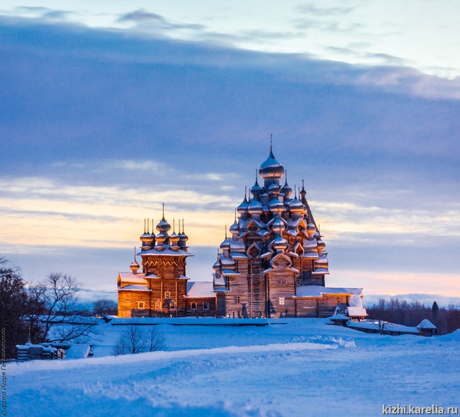 Специальная праздничная программа на острове Кижи. Автобусное путешествие по Заонежью, далее — на судне на воздушной подушке «Хивус-10» по заснеженному Онежскому озеру.