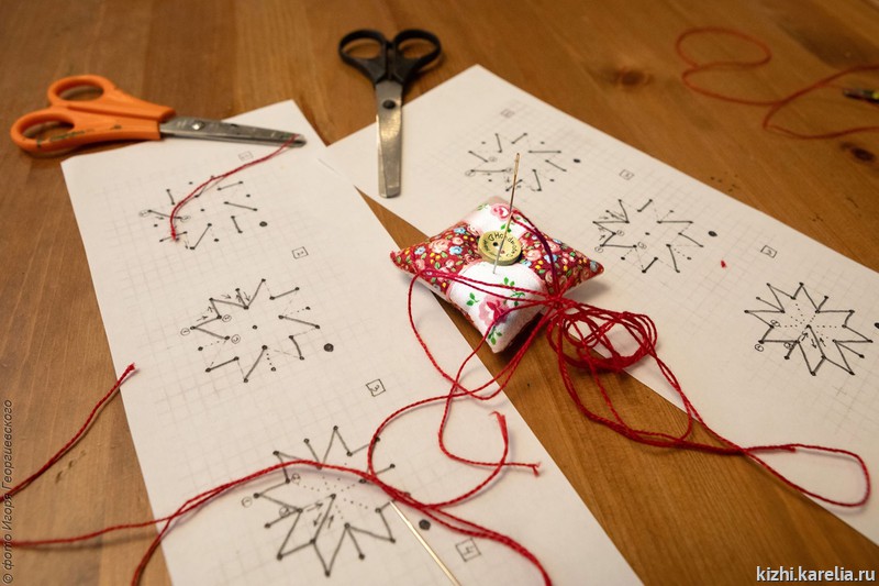 Шестиклассницы Таисия Левантийская и Полина Радова демонстрировали друг другу сережки, которые сделали на мастер-классе «Досюльный шов». Вместе с ними вышивали и мальчишки. Многие впервые держали в руках иголку, но не Даниил Мешков. Он поделился, что уже зашивал дырку на носках и футболке.