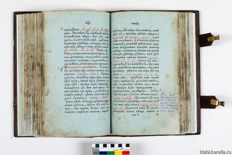 Иван Михеевич Абрамов (1869–1949) и его отец Михей Иванович Абрамов (1830–1912) – известные заонежские художники-иконописцы. Им посвящена мемориальная экспозиция в выставочном зале «Кижи на Кирова». Этот фолиант – один из экспонатов.