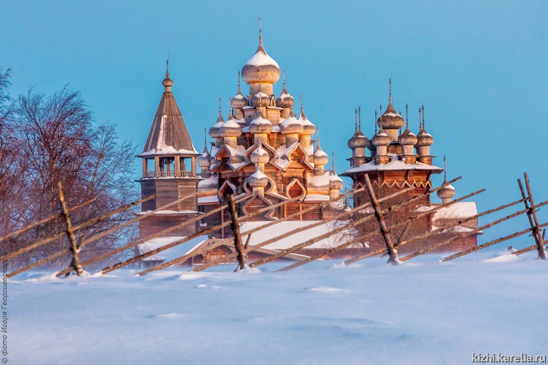 Пришла настоящая зима, и остров Кижи надел белые снежные одежды. Настало время уединенных прогулок на природе, созерцания древних деревянных храмов, предновогоднего отдыха от суеты и обновления души.