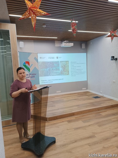 Анна Анхимова: «Тема выступления — достижения республики за последние годы. Так как я сама вепсянка в восьмом поколении и активно работаю в области национальной политики нашей республики, то в своей лекции сделаю акцент на проектах для коренных народов региона — карелов, вепсов, русских». Лектор рассказала о музее «Кижи» и памятниках деревянного зодчества на острове Кижи.