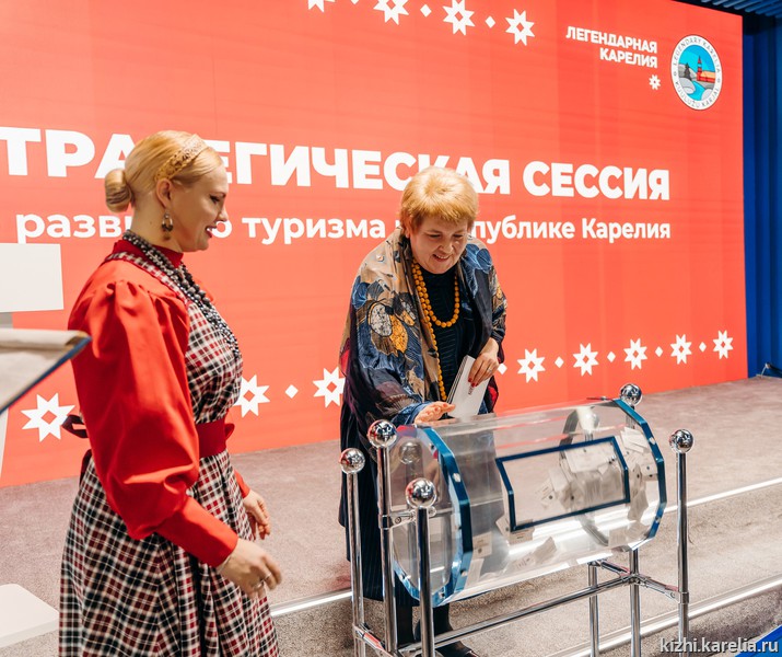 В завершение выступления Елены Богдановой на сессии была разыграна поездка на остров Кижи.