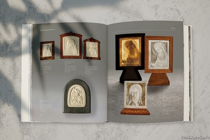 Сергей Безручко: «Мне важно как издателю, что академическая книга получилась интересной для широкого читателя. Альбом приятно взять в руки и перелистать — качественные снимки изделий мастеров фотографа Игоря Георгиевского, мелованная бумага, хороший текст. Важно, что на его страницах представлены лучшие карельские мастера, чьи произведения хранятся в фондах музея „Кижи“. Некоторых художников уже нет в живых, этот альбом — память о них».